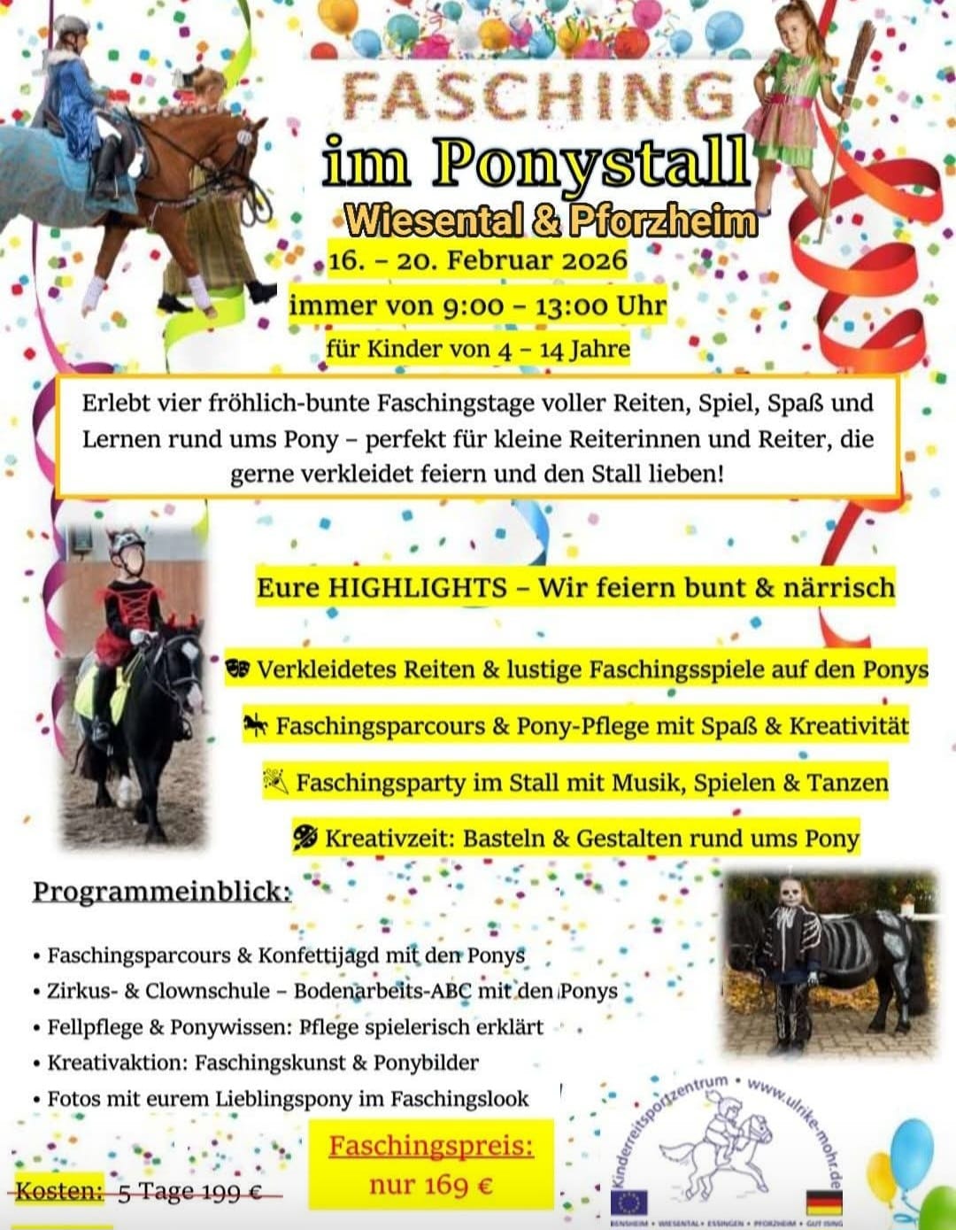 - Unterrichtserteilung mit Kindern im Kinderreitsportzentrum Bensheim: 14.11.–30.12.2025